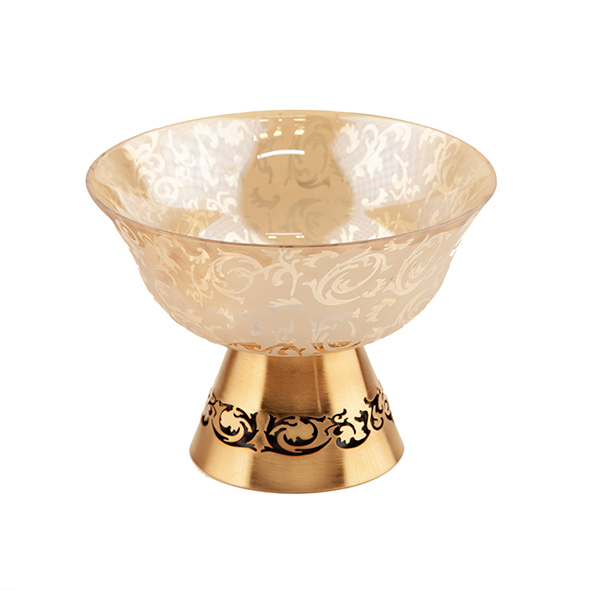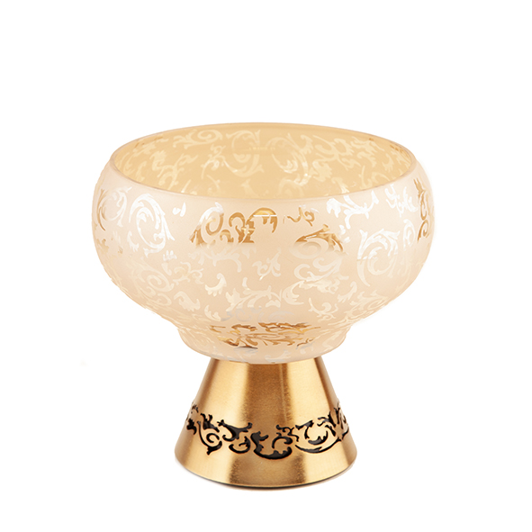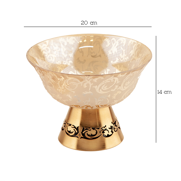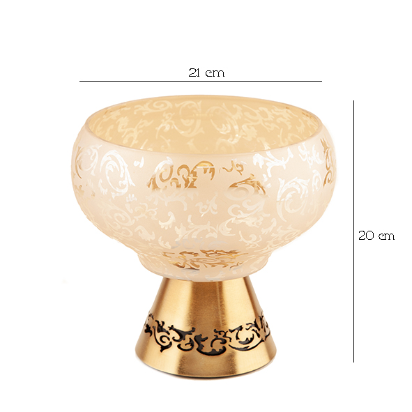 هر دو سایز آجیلخوری روی پایه فلزی آبکاریشده قرار گرفتهاند؛ پایهای محکم، براق و لوکس که با کیفیت بالای آبکاری، در برابر خط و خش و تغییر رنگ مقاوم است. این ترکیب فلز آبکاریشده با بلور طرح اسلیمی، ظاهر ظرف را بسیار شیک و مجلل میکند.