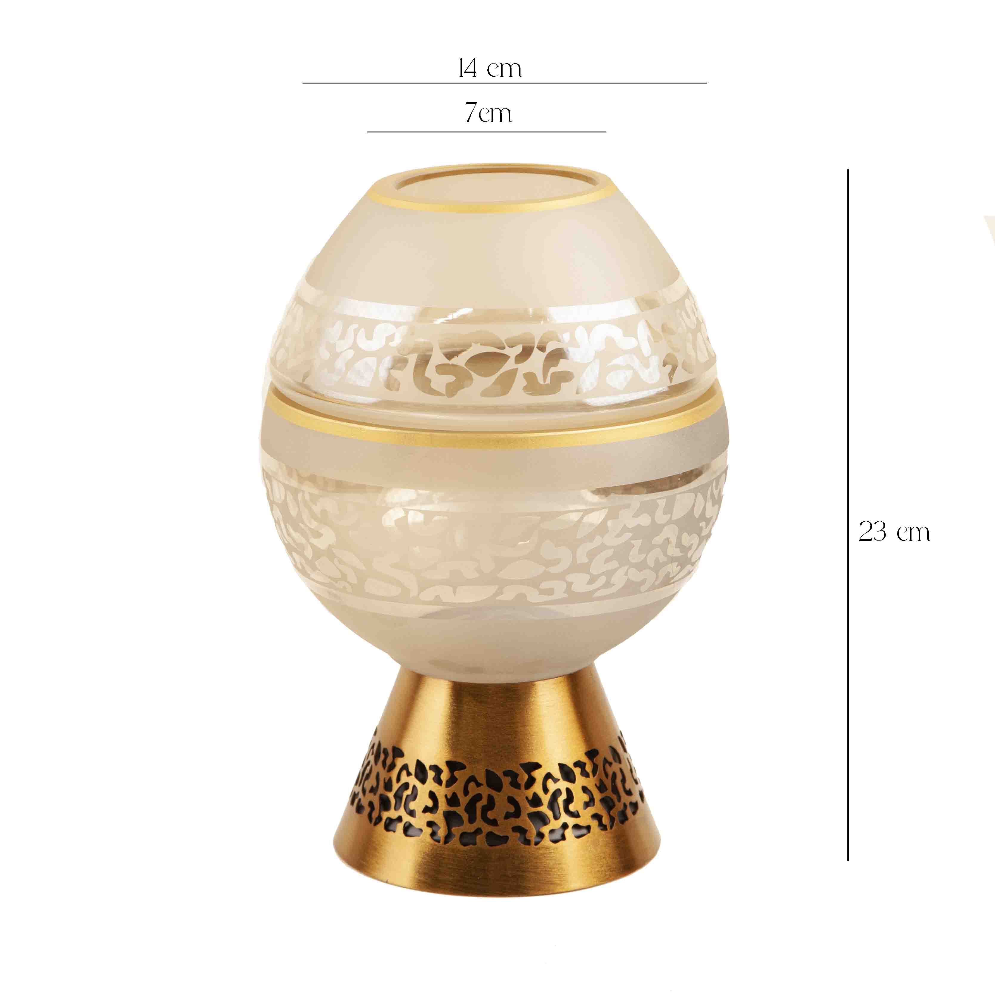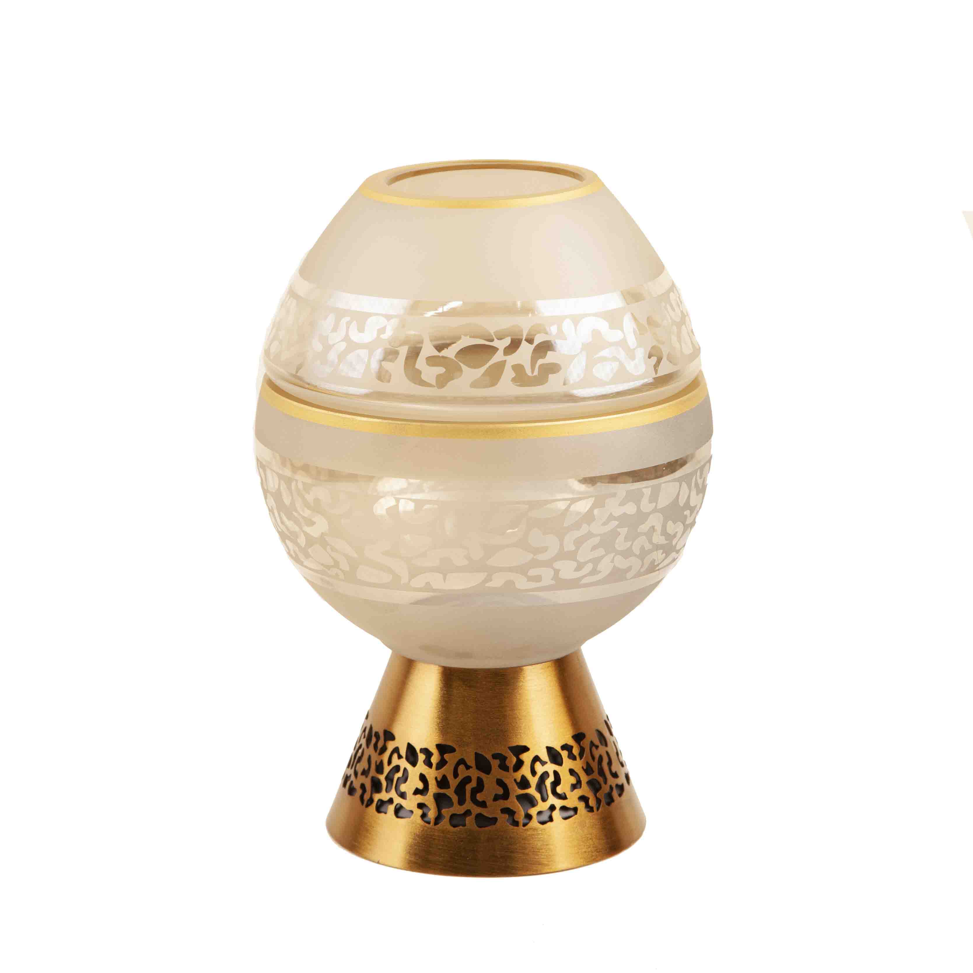 - جنس باکیفیت: بدنه از بلور طرح دار که جلوهای درخشان دارد و پایه فلزی مقاوم با آبکاری فورتیک که در برابر خوردگی و خط و خش مقاوم است.