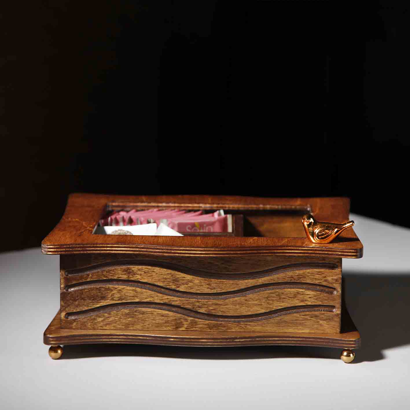 تیباکس چوبی ۳ خانه، انتخابی ایدهآل برای افرادی است که به نظم و زیبایی میز پذیرایی اهمیت میدهند. این جعبه با طراحی کلاسیک و سه بخش مجزا، امکان نگهداری و سرو انواع دمنوش، چای کیسهای، شکلات یا سایر خوراکیهای کوچک را بهصورت جداگانه فراهم میکند و به میز شما جلوهای مرتب و زیبا میدهد.