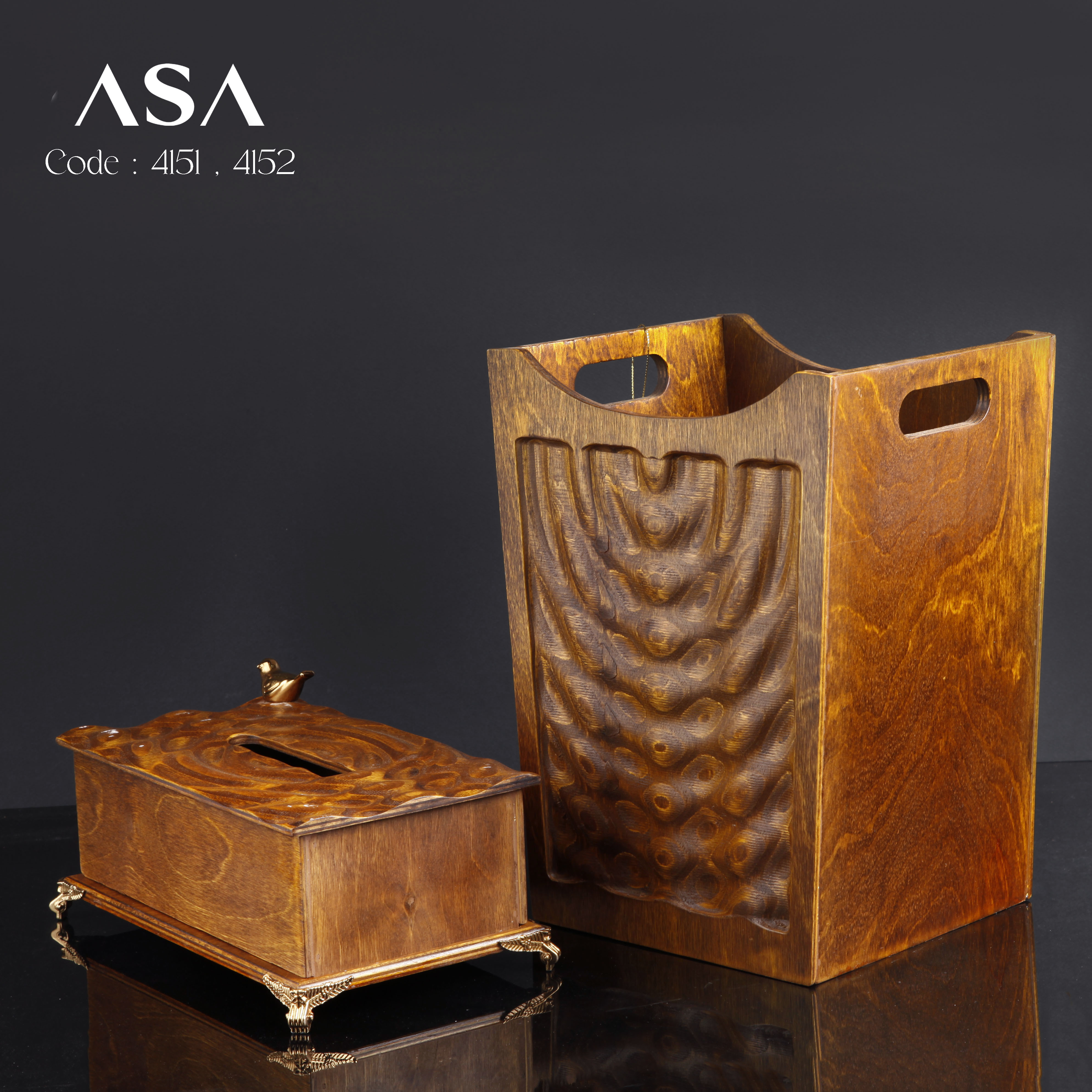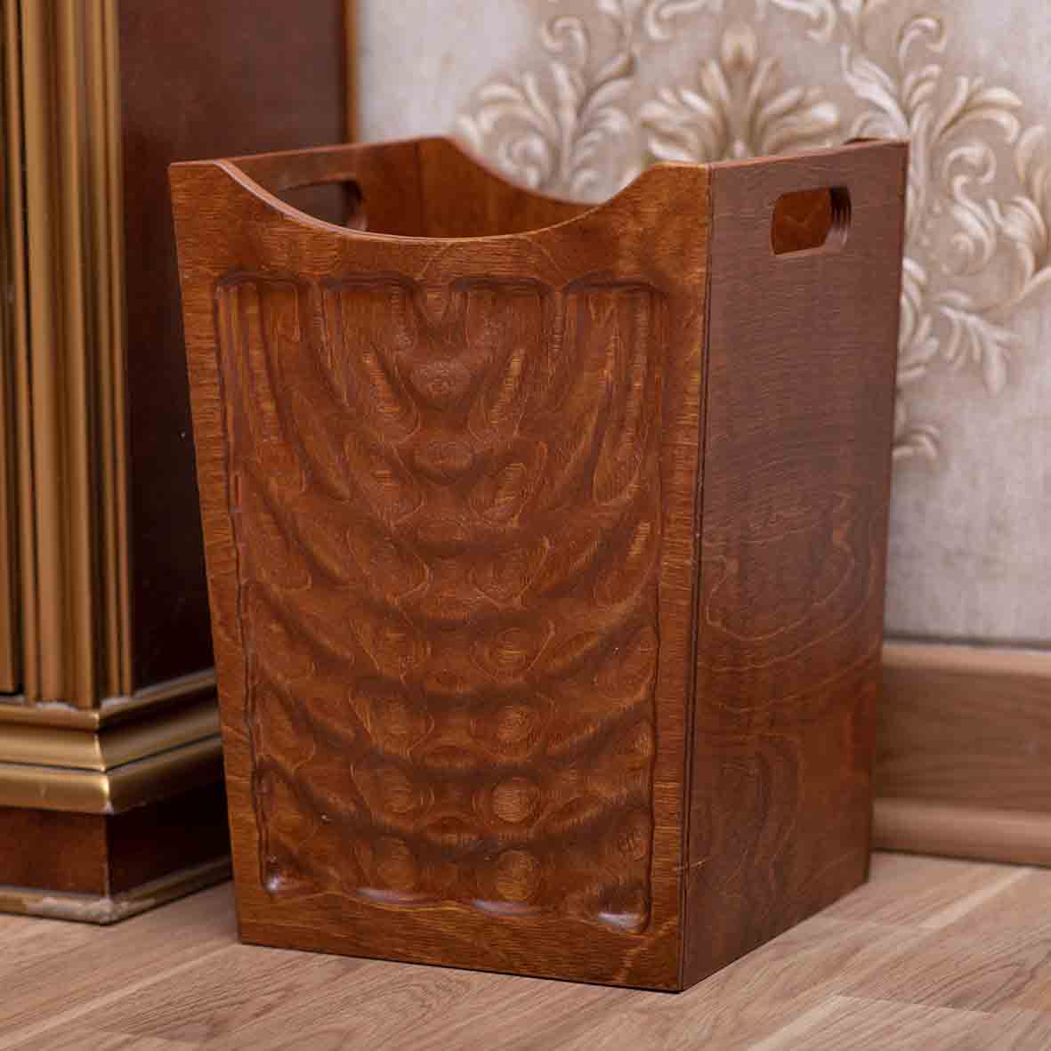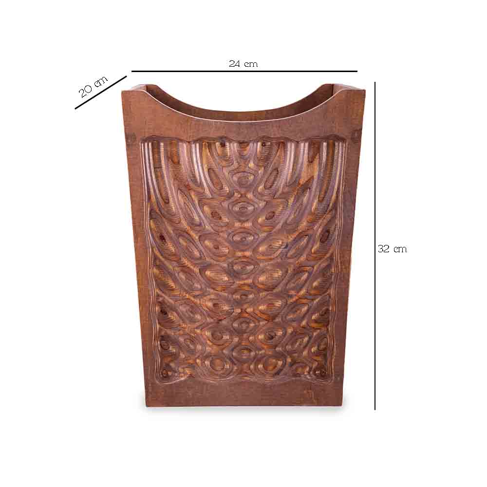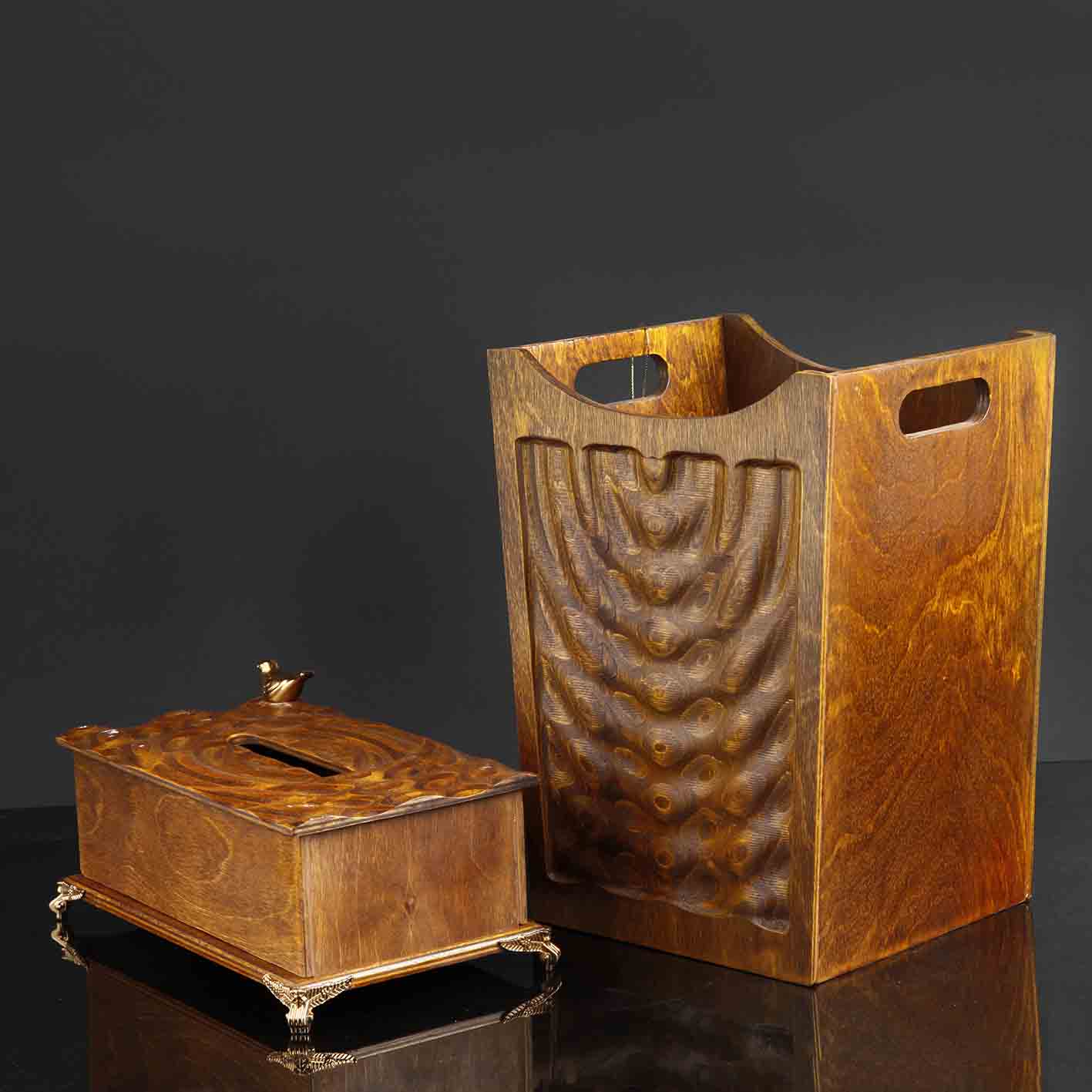 سطل چوبی طرح موج، ساخته شده از چوب پلایوود با طراحی زیبا و منحصربهفرد، مناسب برای دکوراسیون مدرن و شیک در منزل و محل کار.