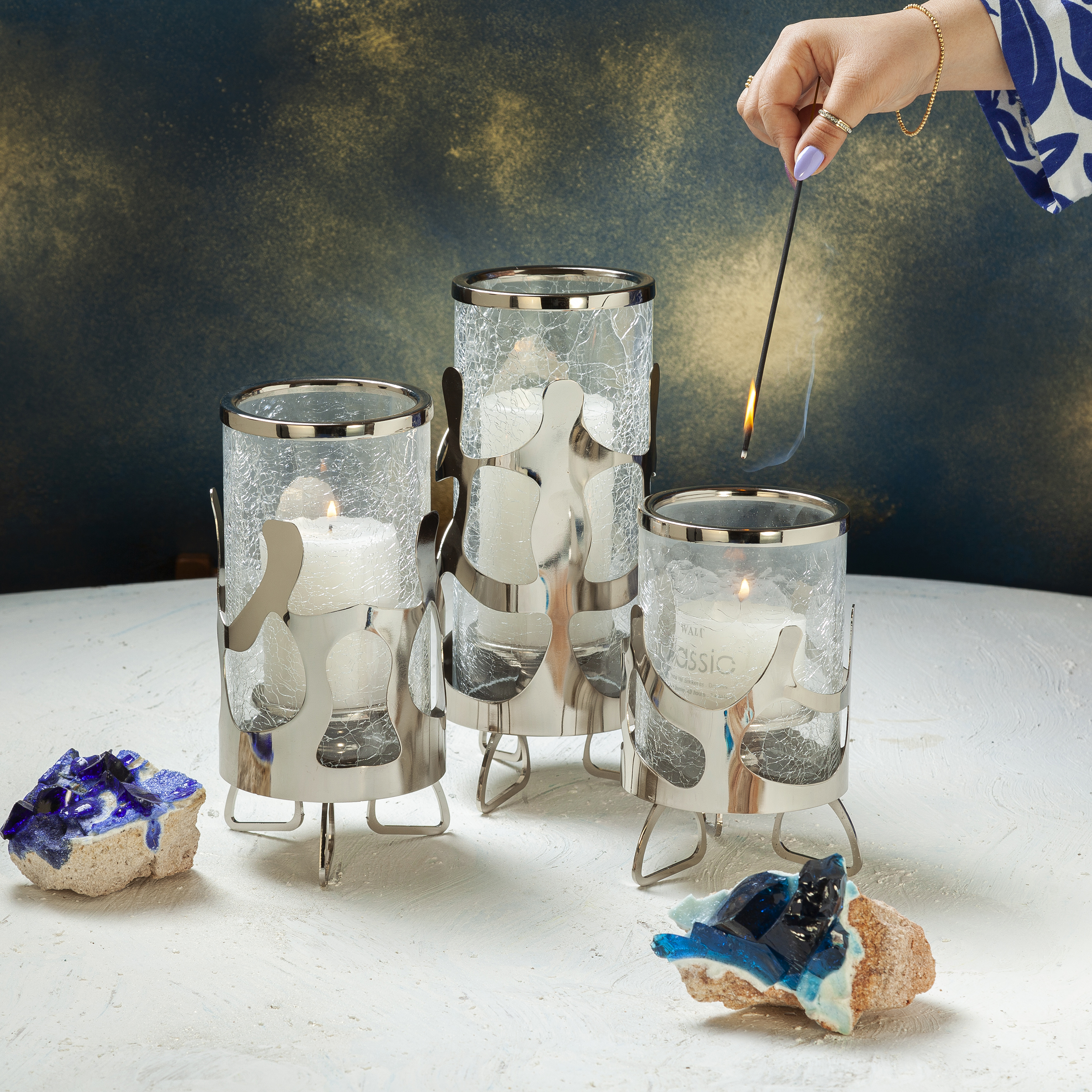 این شمعدان فلزی با طراحی منحصر به فرد طرح اشکی و رنگ نقرهای (سیلور) انتخابی ایدهآل برای تزئین خانه، محل کار یا فضای مراسم شماست. ساخته شده از فلز با کیفیت بالا، این شمعدان دوام و زیبایی را همزمان ارائه میدهد. طراحی مدرن و در عین حال طبیعی آن باعث میشود به راحتی با هر سبک دکوراسیونی هماهنگاین شود و فضایی گرم و دلنشین ایجاد کند.