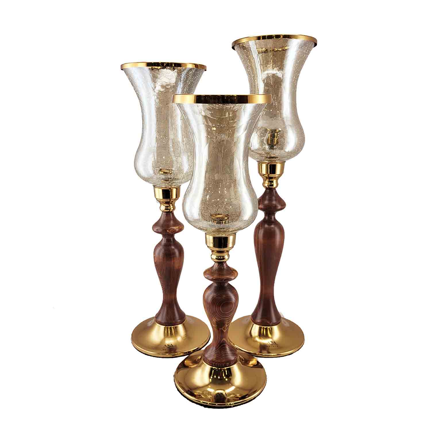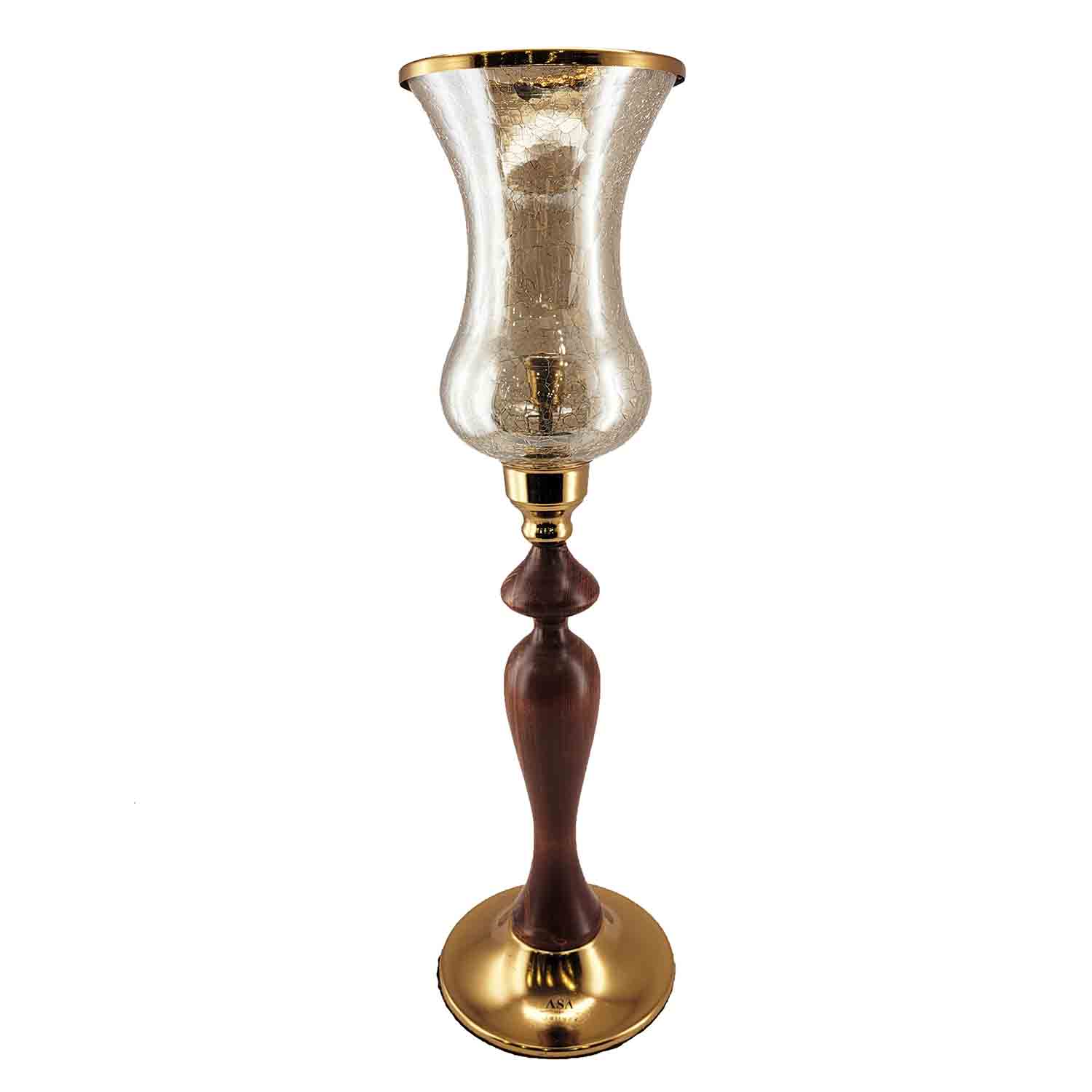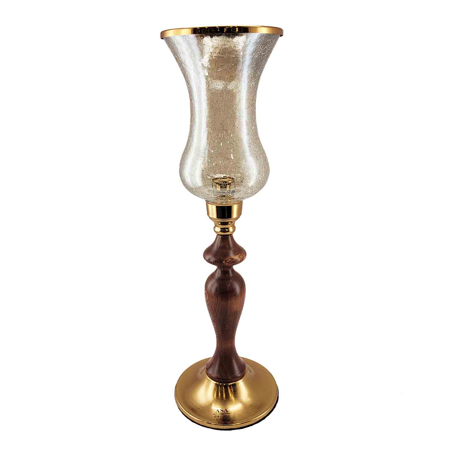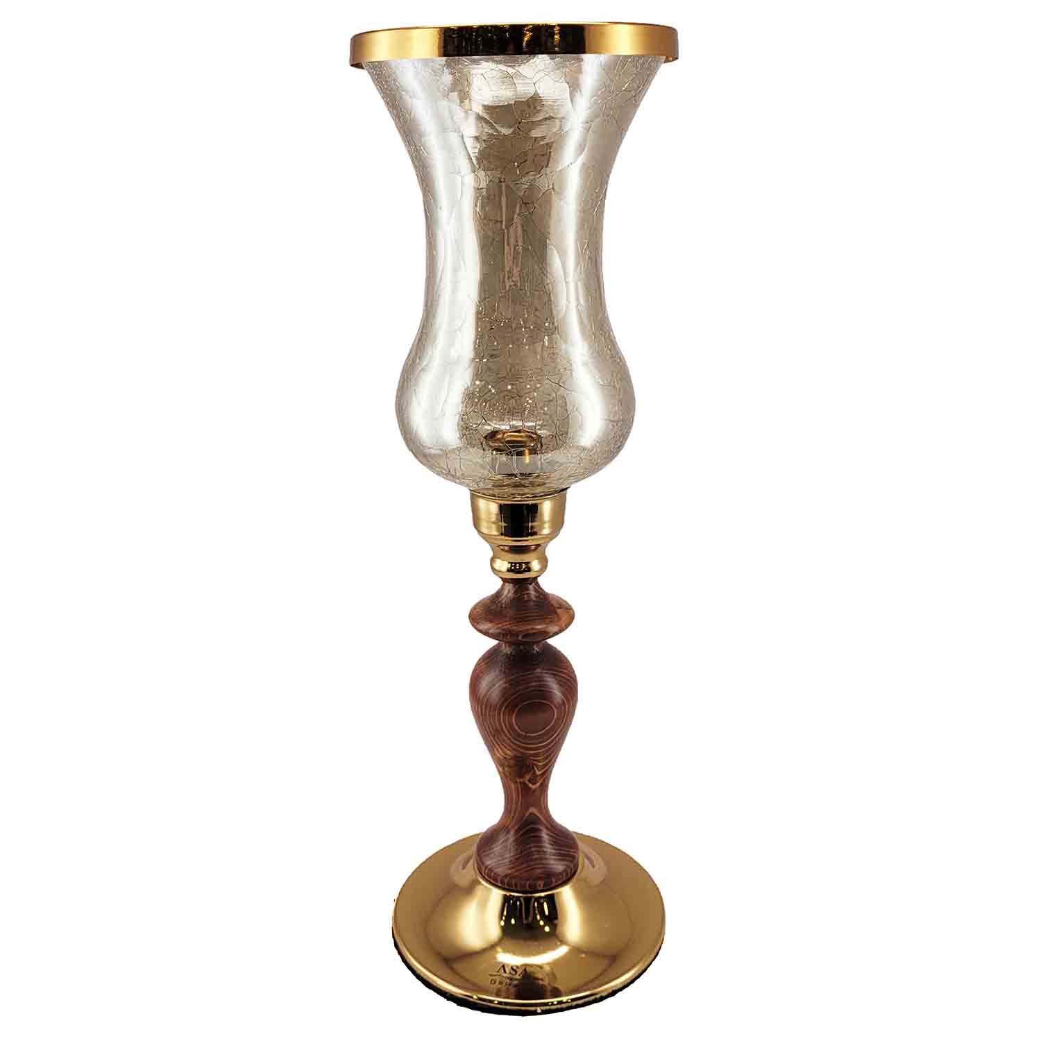 شمعدان لاله چوبی برنجی، ترکیبی زیبا از هنر چوب و فلز با طراحی کلاسیک، مناسب برای دکوراسیون سنتی و مدرن.