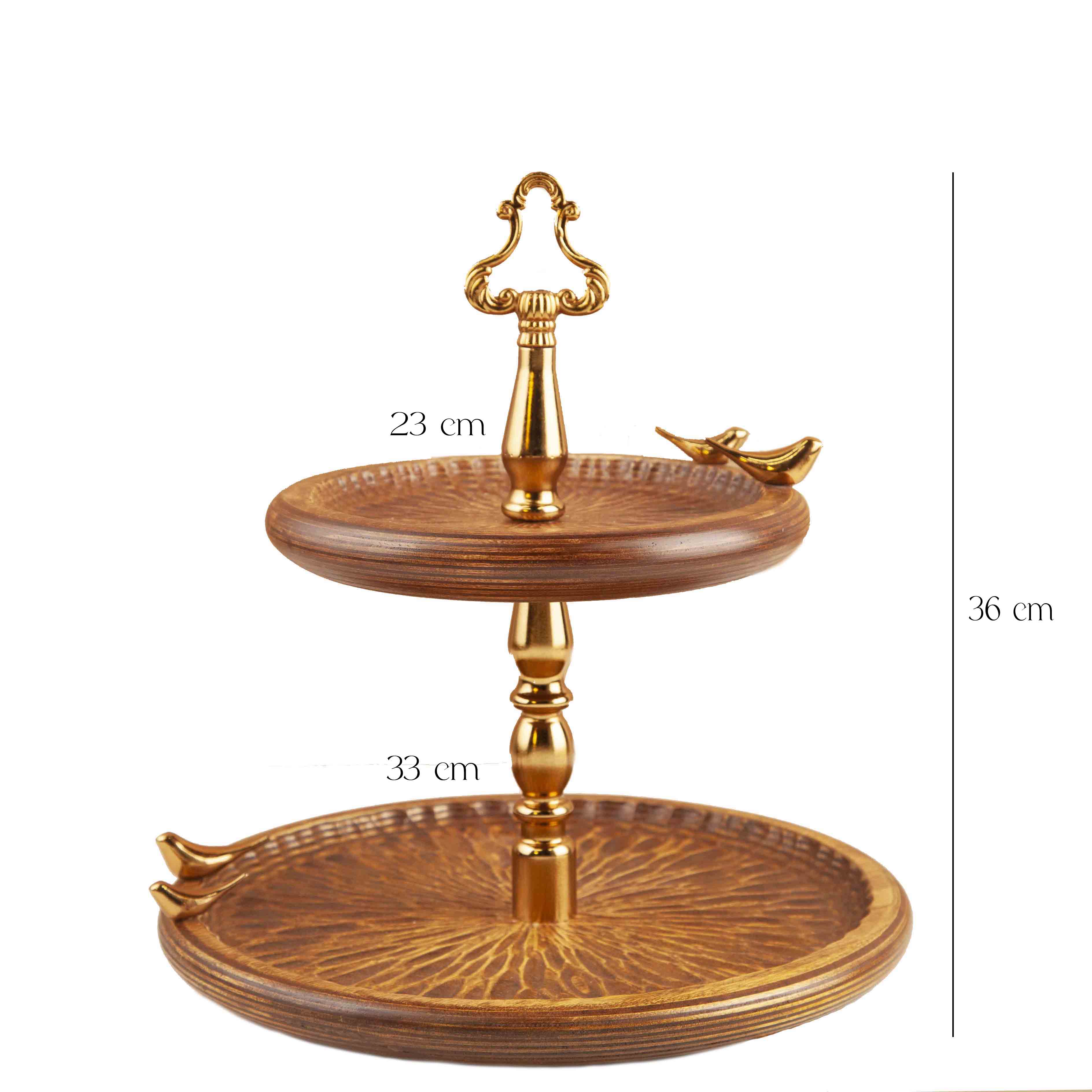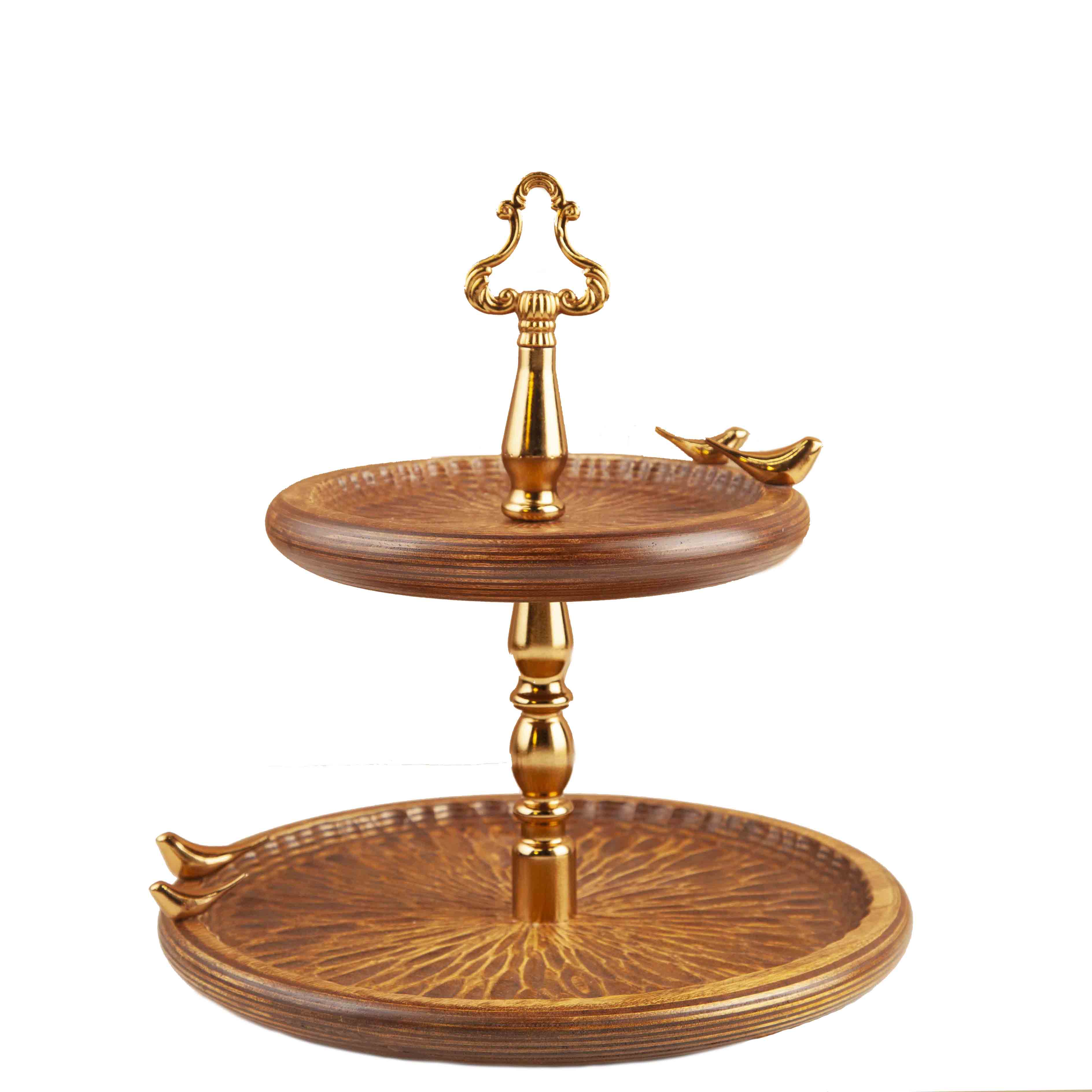 شیرینیخوری دو طبقه کمند با طراحی شیک و مدرن، از چوب پلایوود مقاوم و پایههای فلزی آبکاریشده ساخته شده است. این محصول مناسب سرو انواع شیرینی، دسر و تنقلات در مهمانیها و دورهمیها بوده و با دو طبقه مجزا، امکان چیدمان مرتب و جذاب را فراهم میکند.