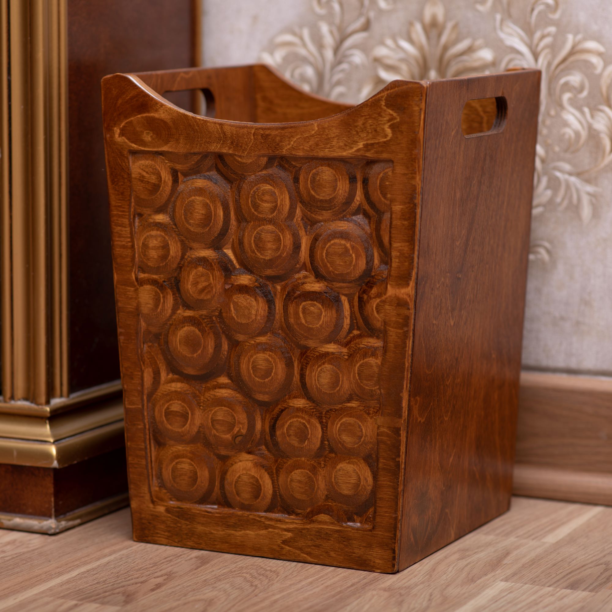 سطل چوبی شیک با طراحی دایرهای از جنس چوب پلایوود مقاوم، مناسب برای منزل یا محل کار.