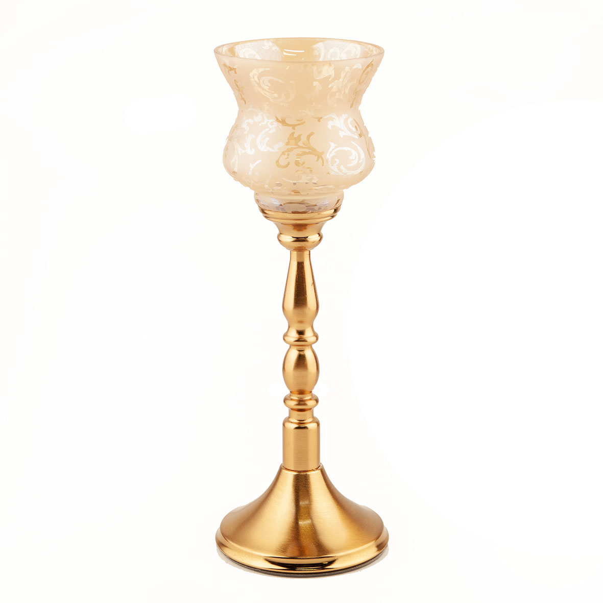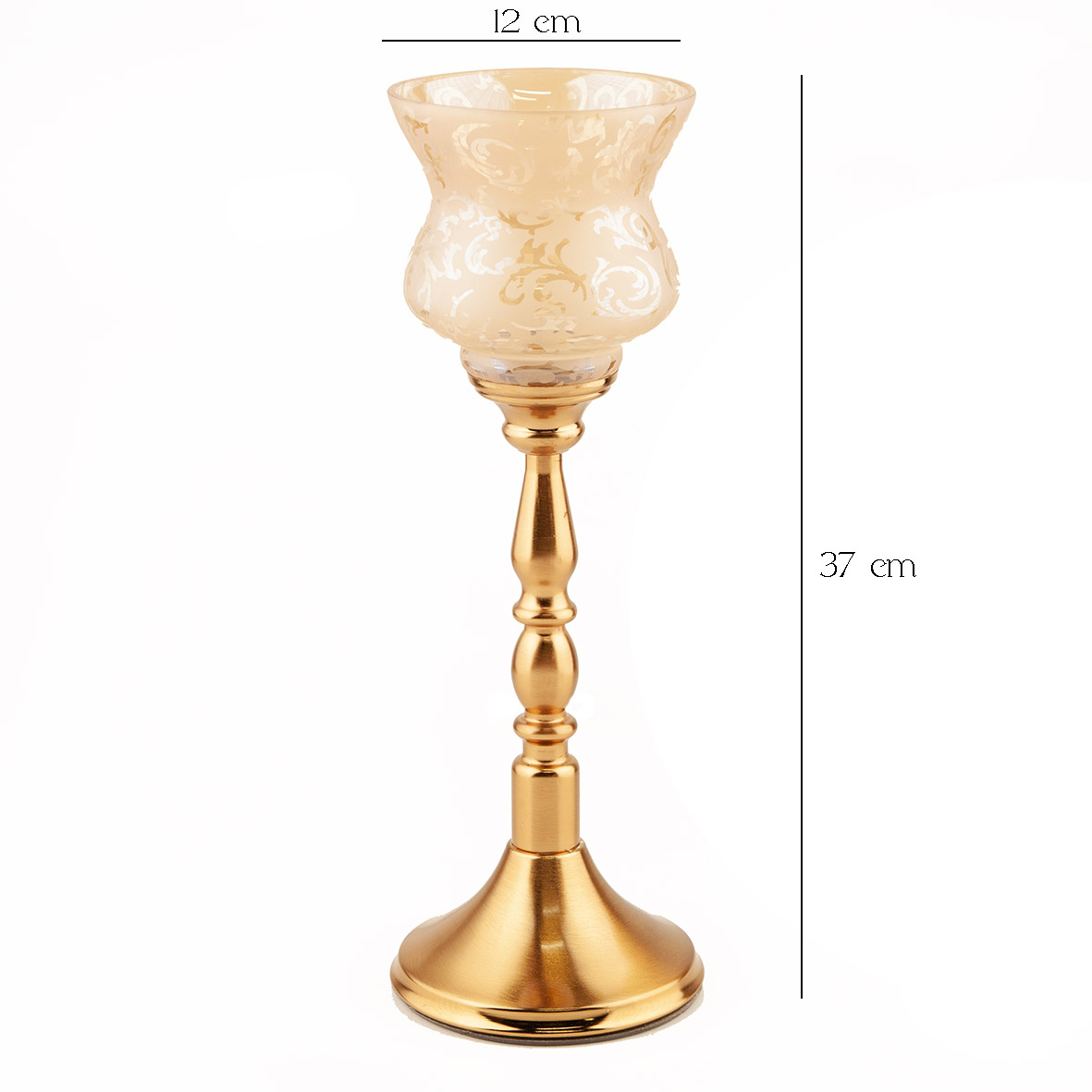 شمعدان لاله الیسا از بلور شفاف طرح اسلیمی با پایه فلزی آبکاریشده ساخته شده و انتخابی شیک و چشمنواز برای نورپردازی، دکوراسیون و تکمیل ست پذیرایی الیسا است.
