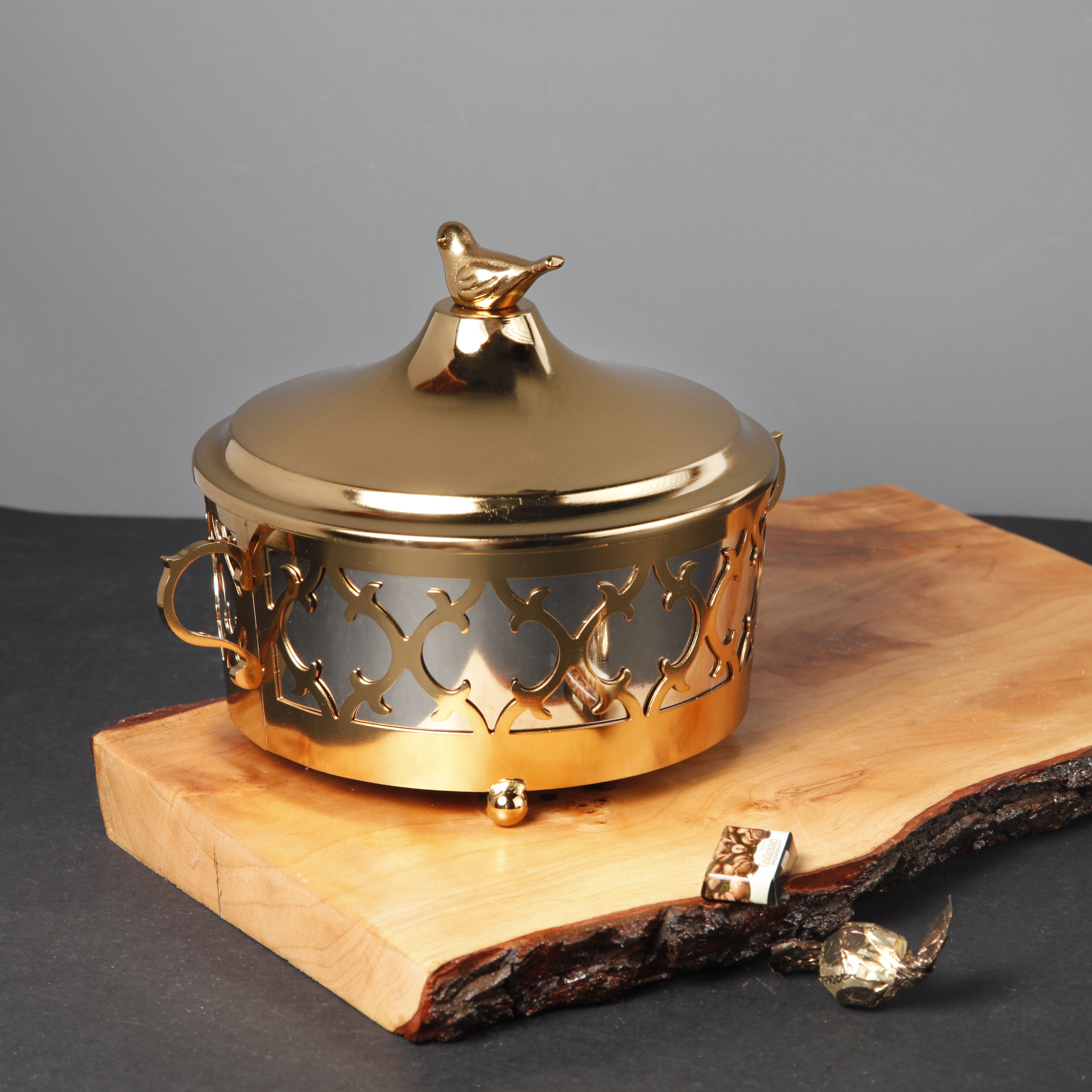 شکلاتخوری فلزی دستهدار طرح شاخه ای بزرگ برنز آسا ترکیبی از طراحی ظریف و متریال مقاوم است. این محصول با بدنهی فلزی آبکاریشده برنز و طراحی الهامگرفته از بافت شاخه ای، جلوهای متفاوت و لوکس به میز پذیرایی شما میبخشد. دستهی محکم و ارگونومیک آن علاوه بر سهولت در جابجایی، زیبایی بیشتری به ظرف داده است. اندازه بزرگ این شکلاتخوری، آن را برای سرو شکلات، شیرینی، خشکبار و انواع تنقلات در مهمانیها و مجالس رسمی بسیار مناسب میسازد. علاوه بر کاربری روزمره، این محصول میتواند بهعنوان یک المان دکوراتیو لوکس نیز زینتبخش دکوراسیون منزل باشد و بهخوبی با سایر ظروف پذیرایی برند آسا ست شود.