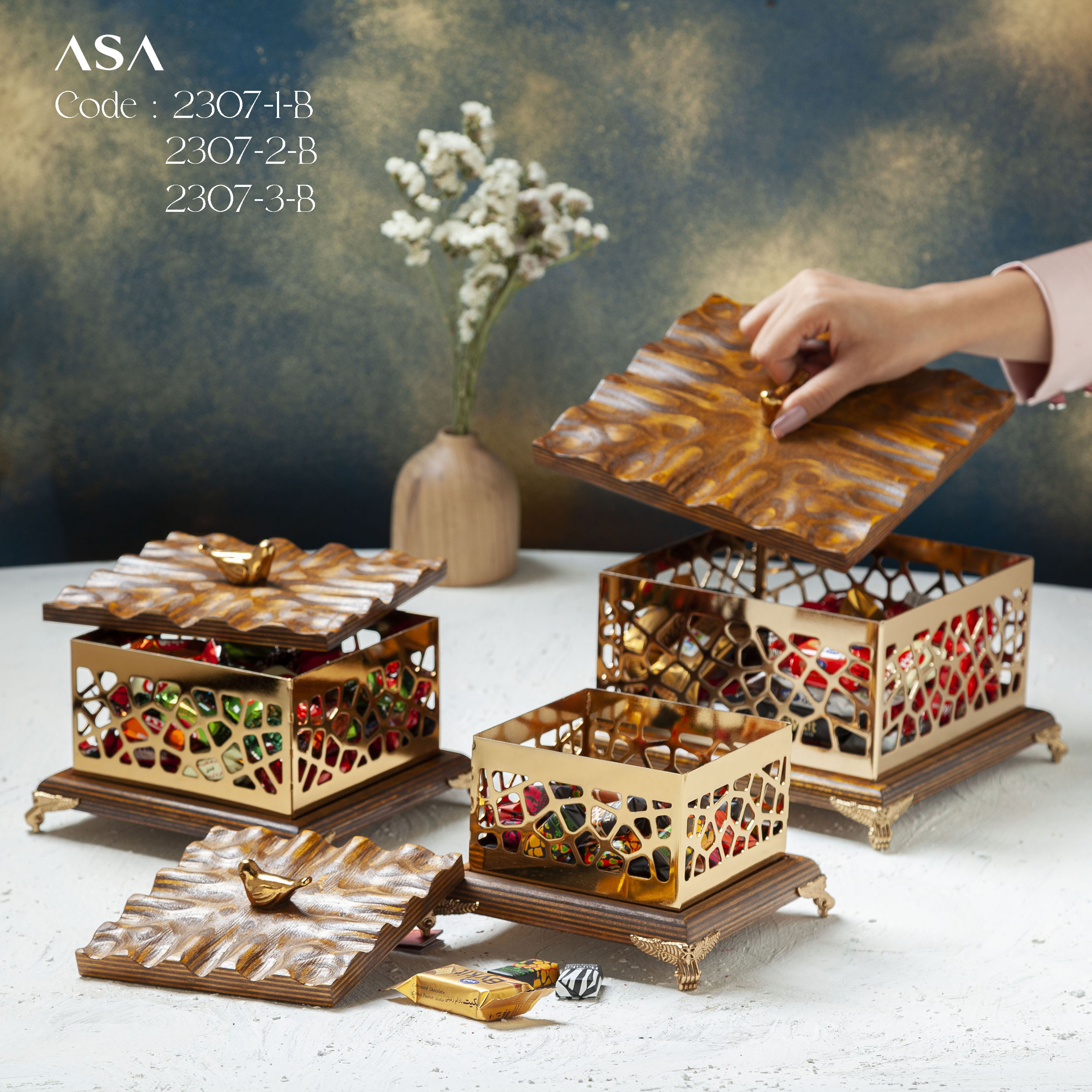 شکلاتخوری مربع بافتدار برنز آسا یکی از ظروف پذیرایی مدرن و شیک برند آسا است که با فلز آبکاریشده باکیفیت ساخته شده و سطح بافتدار آن جلوهای خاص و متفاوت به میز پذیرایی میبخشد. طراحی مربعی و منظم این شکلاتخوری علاوه بر زیبایی، کاربردی نیز هست و فضای مناسبی برای سرو شکلات، شیرینی و آجیل فراهم میکند. رنگ برنز براق و سطح بافتدار آن بهراحتی با سایر ظروف پذیرایی ست میشود و جلوهای لوکس به دکوراسیون منزل شما میدهد. این محصول هم برای استفاده روزمره و هم برای مهمانیهای رسمی و مجلسی انتخابی عالی است