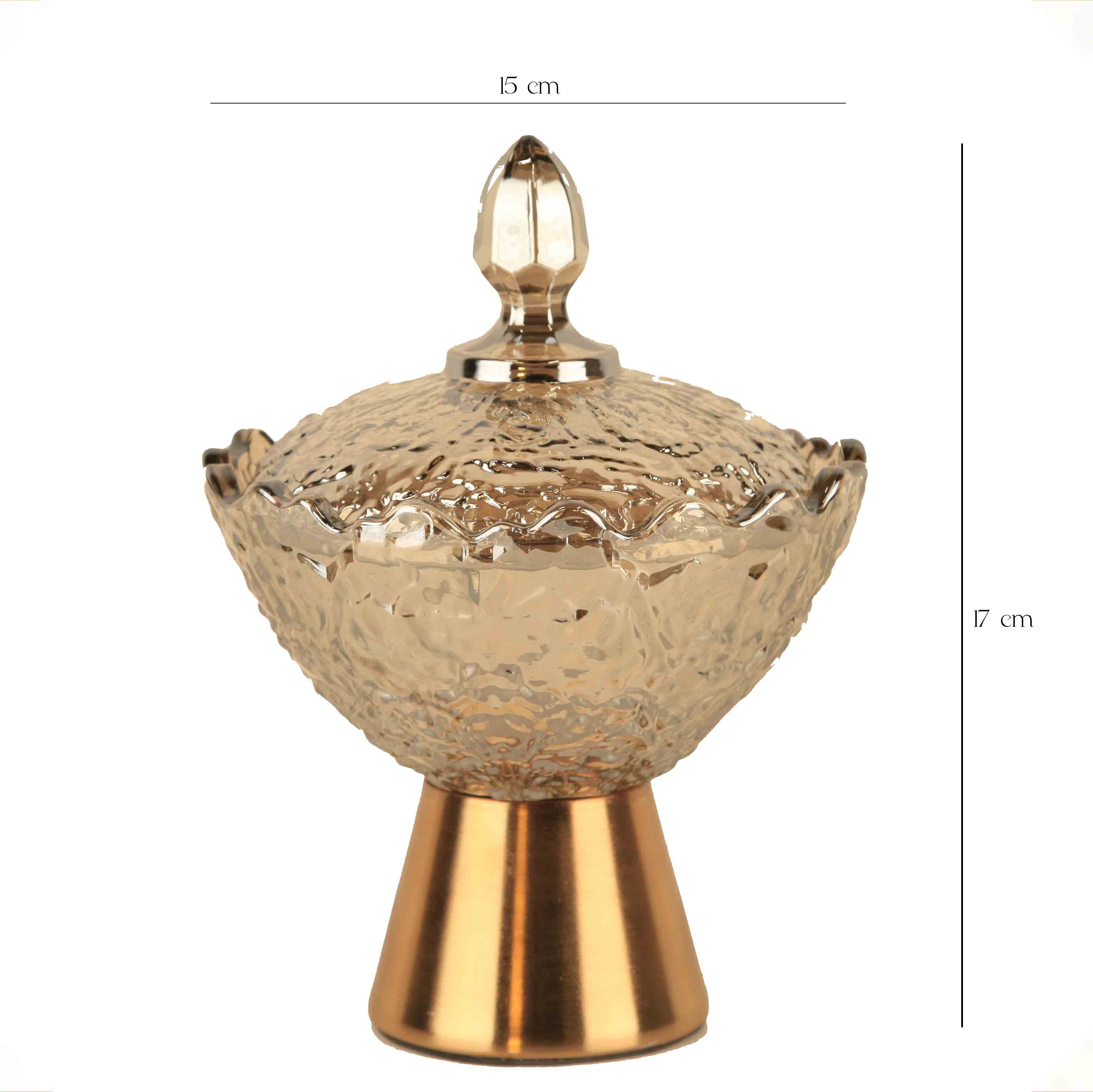 بدنه این شکلاتخوری از بلور شفاف با طرح یخی ساخته شده که در ترکیب با پایه فلزی آبکاری شده فورتیک، جلوهای درخشان و شیک ایجاد کرده است. آبکاری فورتیک علاوهبر ظاهری زیبا، مقاومت بالا در برابر خوردگی و تغییر رنگ دارد.