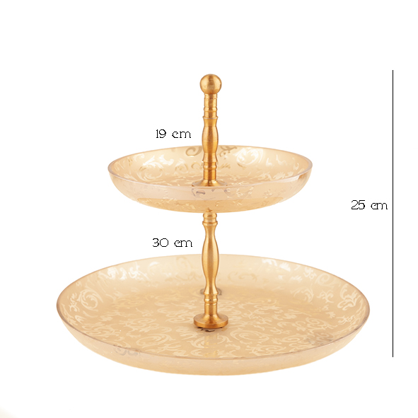شیرینیخوری دو طبقه الیسا یکی از خاصترین مدلهای پذیرایی است که با ترکیبی از طراحی کلاسیک و مدرن، جلوهای بسیار شیک و حرفهای به میز مهمانی شما میبخشد. سطح هر دو طبقه از بلور شفاف با طرح اسلیمی حکشده ساخته شده؛ طرحی هنری و ظریف که زیر نور جلوهای درخشان و برجسته ایجاد میکند و زیبایی شیرینیها و خوراکیهای شما را چند برابر نشان میدهد.