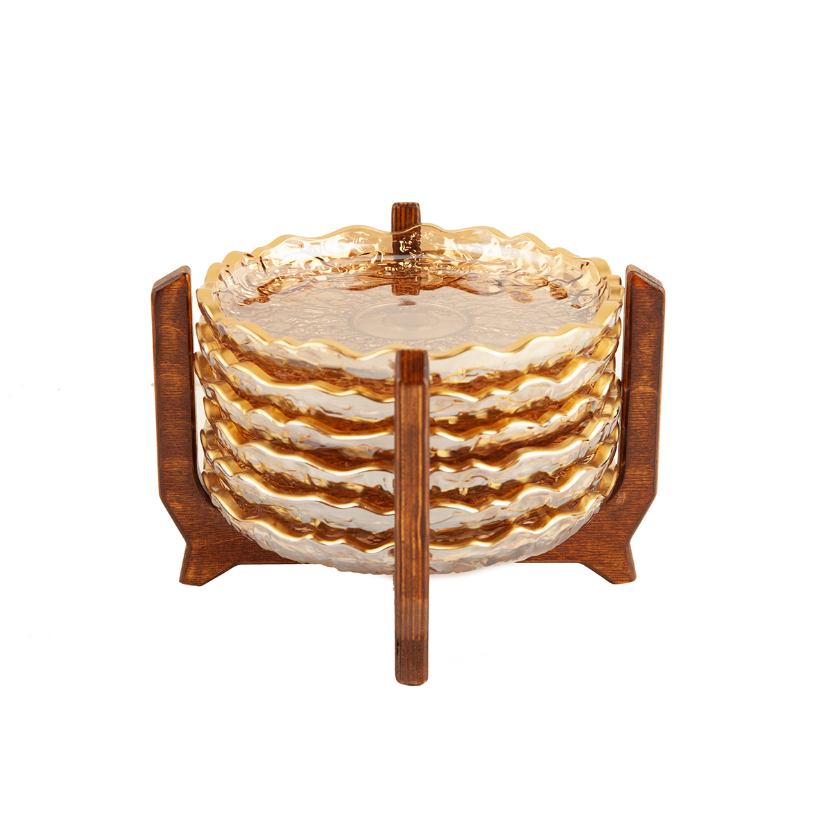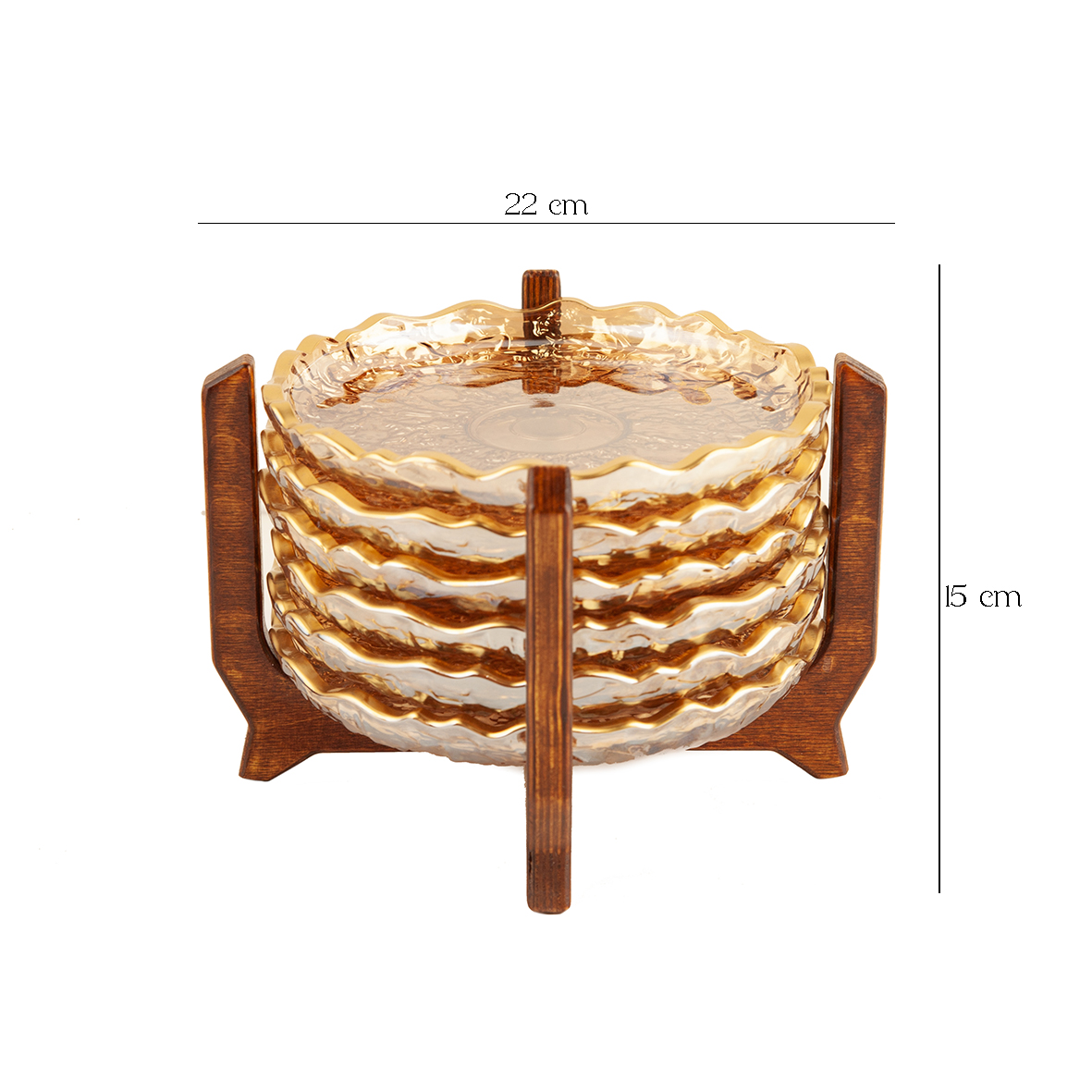 این بلور زیبا بر روی پایهای از چوب طبیعی قرار گرفته که با رنگ گرم و بافت دلنشین خود، تعادلی کامل با سردی و درخشندگی بلور ایجاد کرده است. طراحی دقیق پایه باعث ثبات و استحکام بیشتر ظرف شده و به آن جلوهای لوکس و متمایز بخشیده است.