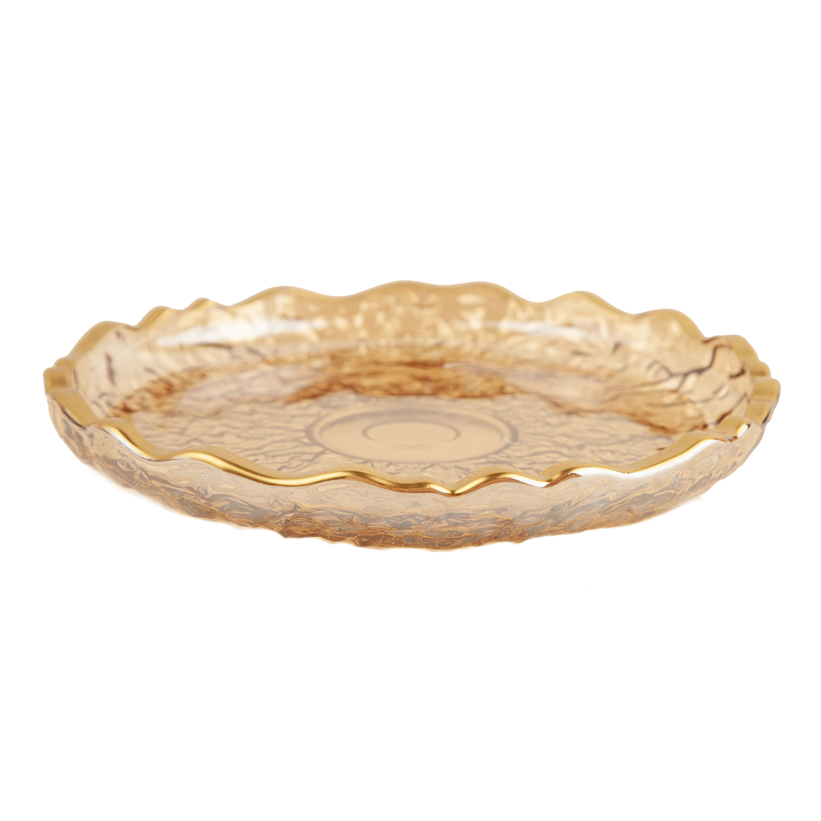 پیشدستی دلوین ترکیبی هنرمندانه از طبیعت و طراحی مدرن است. سطح آن از بلور طرح یخی باکیفیت بالا ساخته شده که با بافت ظریف و شفاف خود، نوری لطیف و درخشان را منعکس میکند و جلوهای چشمنواز به شیرینیها، دسرها و خوراکیهای شما میبخشد.