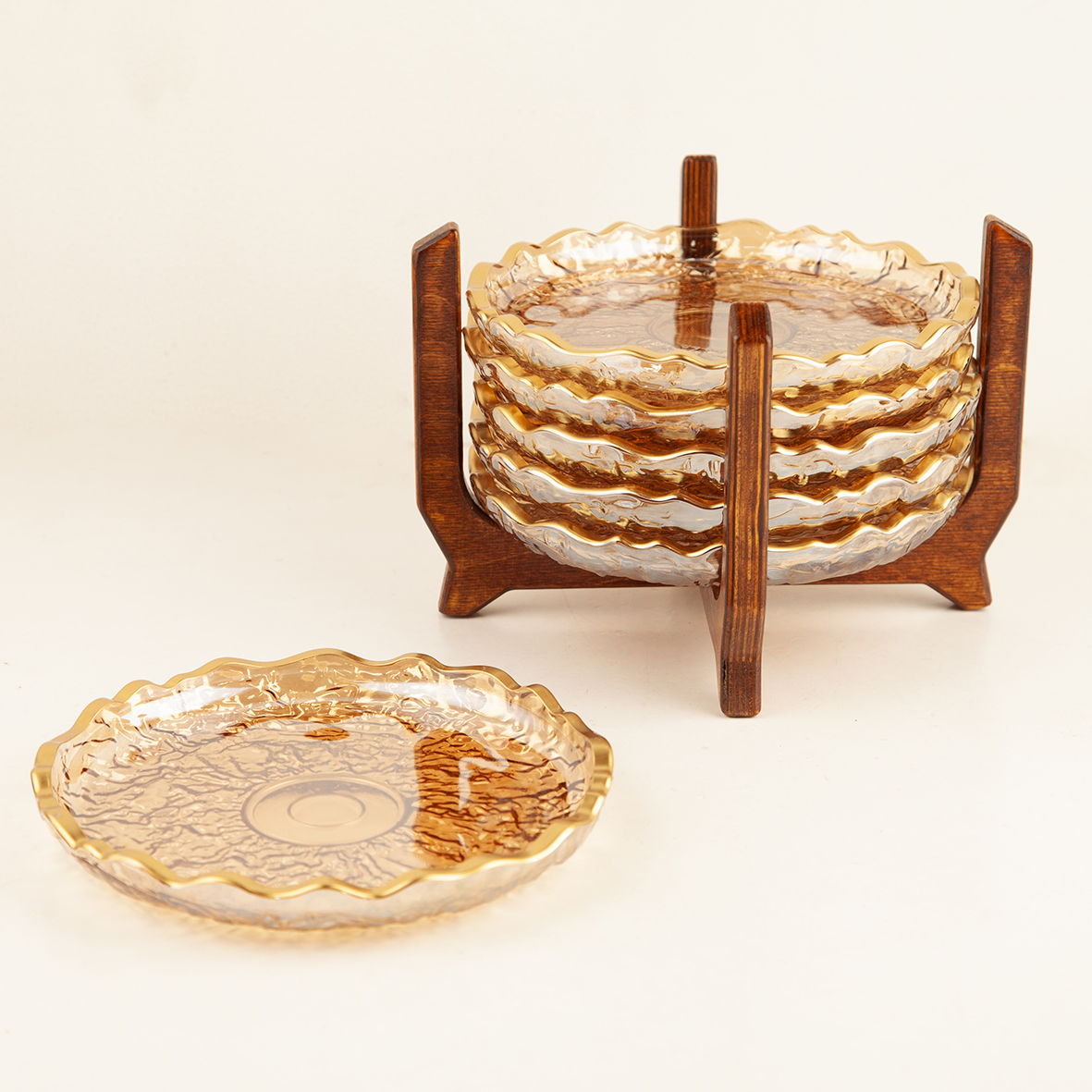 پیشدستی دلوین از بلور طرح یخی با پایه چوبی طبیعی ساخته شده و ترکیبی از طراحی مدرن، بافت شفاف بلور و گرمای دلنشین چوب را به نمایش میگذارد.