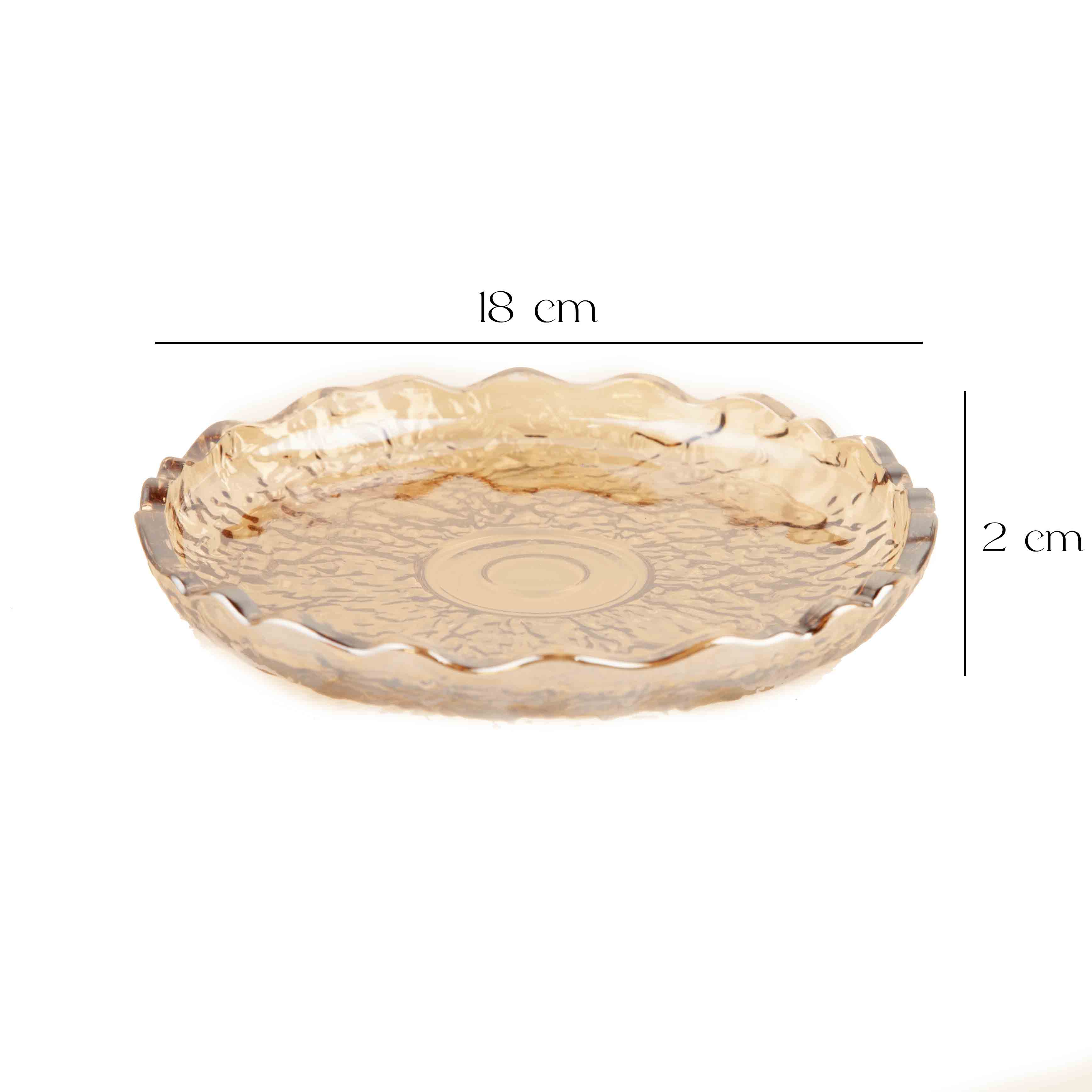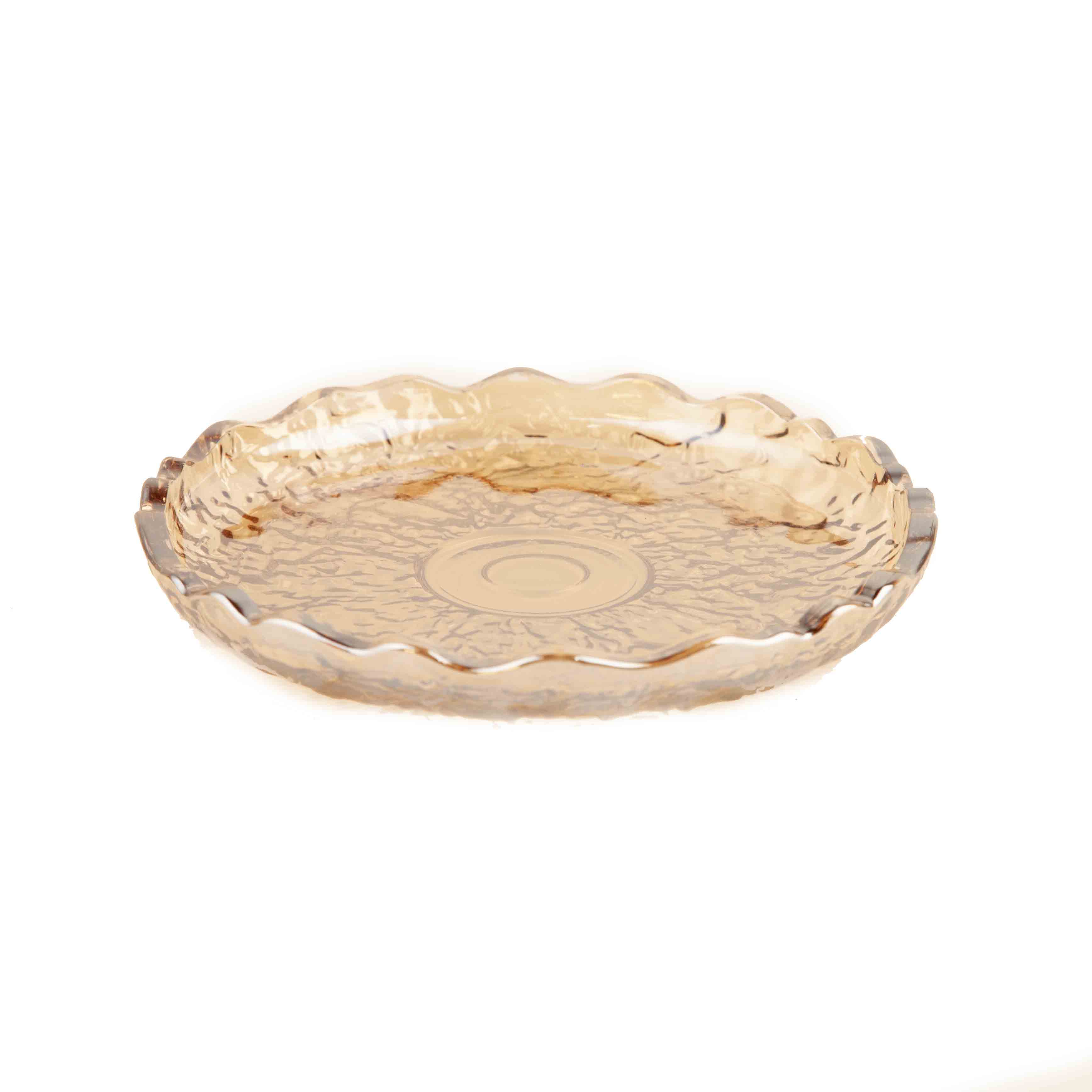 ساختهشده از بلور با طراحی طرح یخی و رنگ عسلی گرم، گزینهای شیک و کاربردی برای سرو غذا و دسر است.