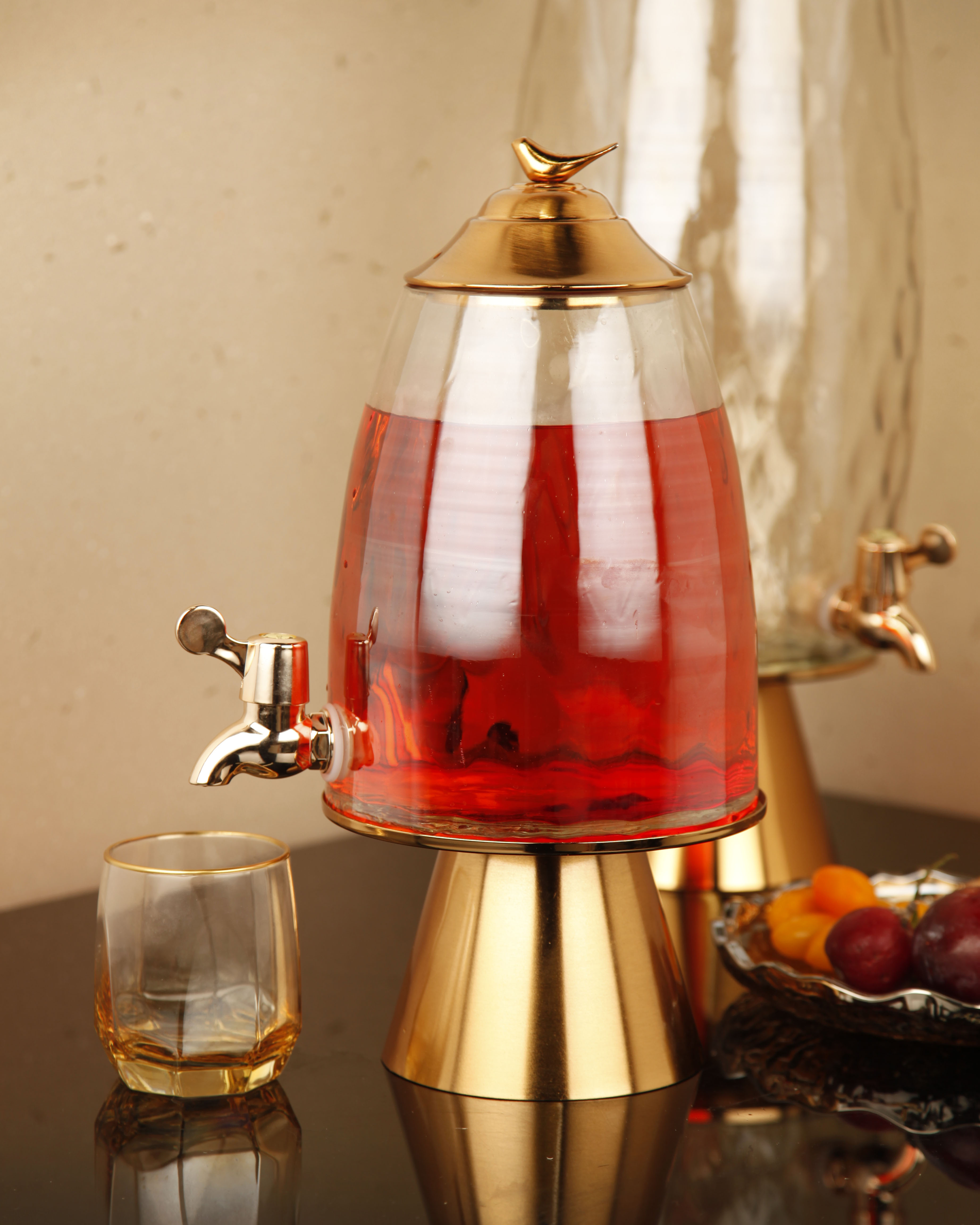 کلمن بلور 3 لیتری ساخته شده از بلور شفاف با درب و شیر فلزی دارای آبکاری فورتیکه مقاوم و ضد تغییر رنگ.