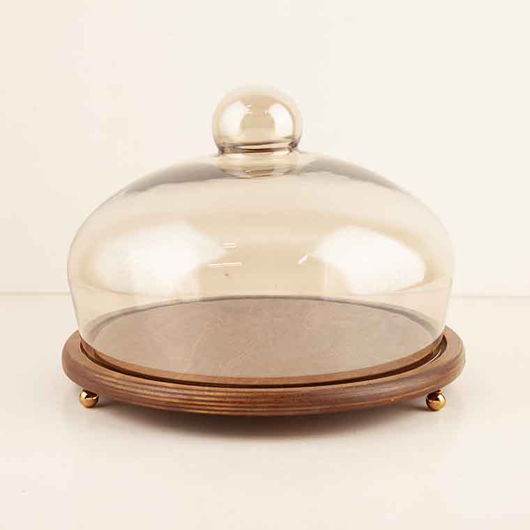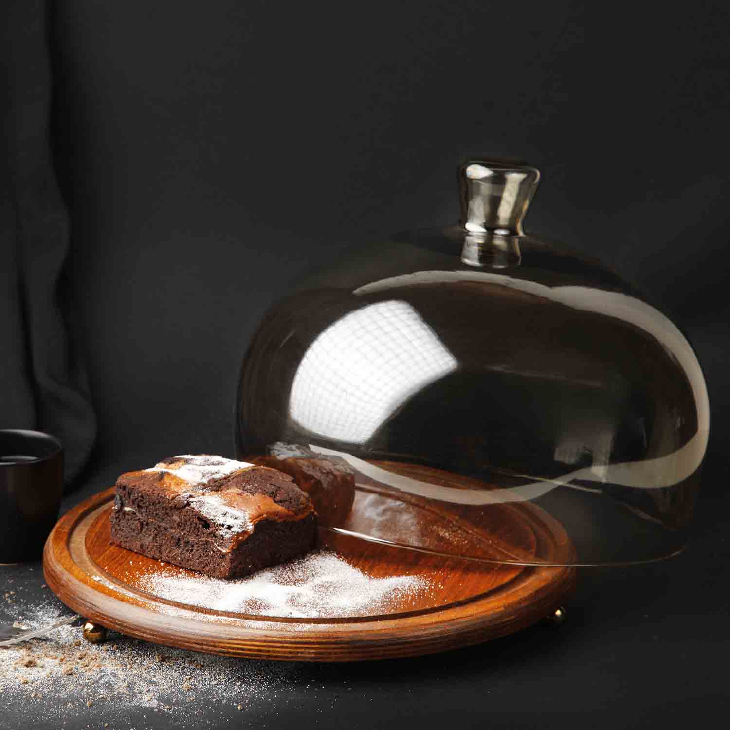 درِ بلوری شفاف و ضخیم، ضمن محافظت از کیک یا شیرینی، امکان نمایش زیبای داخل ظرف را فراهم میکند. فرم منحنی و شفافیت بالای بلور، حس لوکس و مجلل به ظاهر محصول میدهد و هر سرو را به یک صحنه چشمنواز تبدیل میکند.